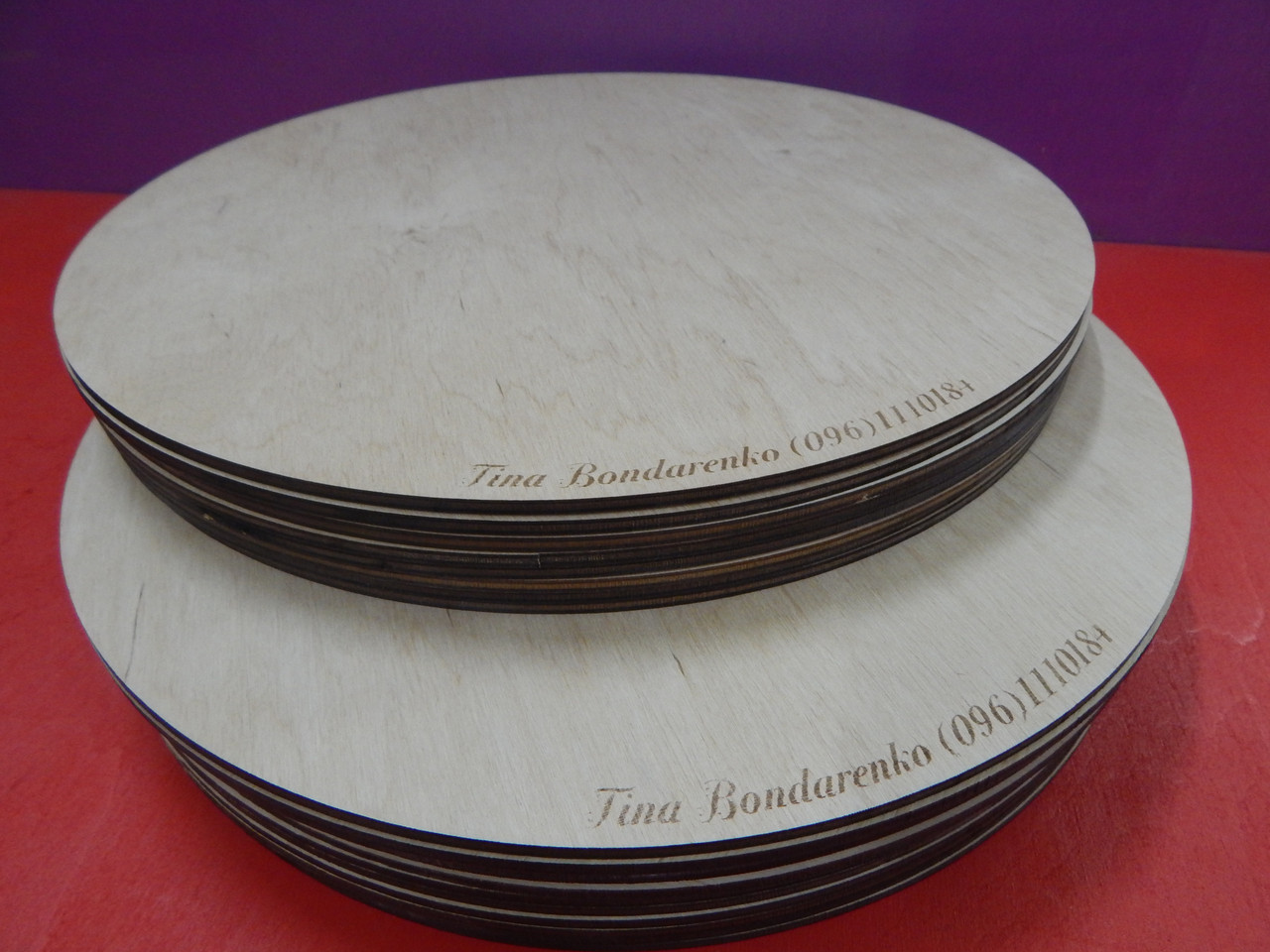 Виготовляємо на замовлення підкладки під торти з ламінованого ДВП (3мм) і фанери (4мм, 6мм). Окантовка, розмір і форма підкладки можуть бути виконані виходячи з ваших вимог. Купуючи у нас підкладки, Ви можете бути впевнені, що отримаєте вироби найвищої якості за вигідною ціною. При бажанні, на підкладку наноситься гравірування логотипу або візерунок.
