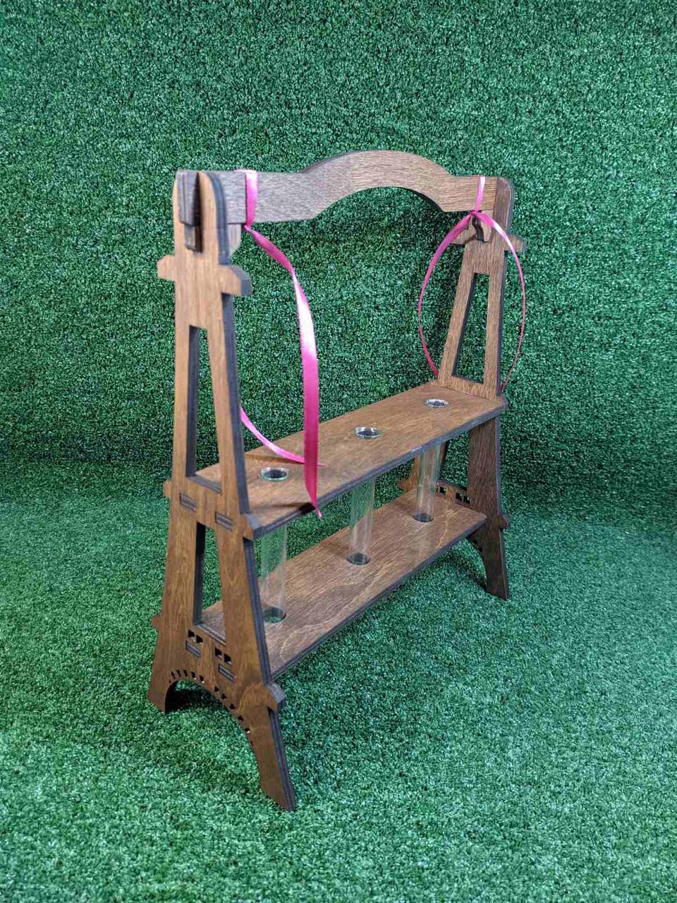 Дерев'яна підставка для квітів з 3 колбами "Ейфелева вежа" тонована